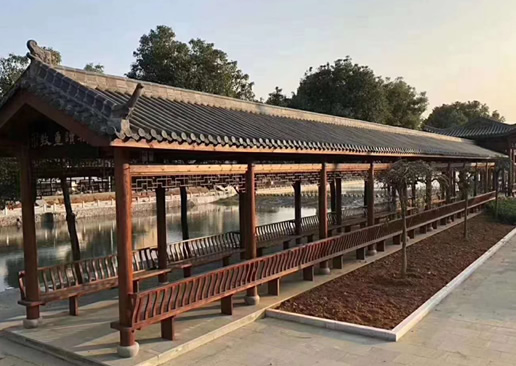 農(nóng)村的發(fā)展越來越受到重視,農(nóng)村的生活環(huán)境也在不斷的改善,而涼亭長廊是農(nóng)村不可缺少的一部分,是為人們提供休閑和娛樂的場所。目前市面上的樹脂瓦長廊和古建小